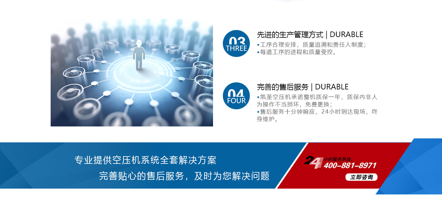 合肥凱圣節(jié)能科技有限公司是從事永磁變頻螺桿壓縮機系統(tǒng)的設計、制造、安裝、調試、維修與一體的公司。 在多年的螺桿空壓機研發(fā)與推廣歷程里,凱圣聚集和培養(yǎng)了大量壓縮機技術設計和管理人員,迅速發(fā)展成為集研究、生產、銷售、服務等環(huán)節(jié)為一體、嚴格按照標準執(zhí)行的企業(yè),公司成立開始,即以滿足客戶的實際需求為己任,大力開拓國內外節(jié)能型空壓機市場,并始終保持創(chuàng)新精神,全力研發(fā)更為節(jié)能的螺桿式空壓機,努力站在空壓機節(jié)能領域的排頭位置。 應用范圍:公司產品廣泛應用于機械、輕工、紡織、食品、石油、化工、冶金、礦山、電力、城建、醫(yī)學研究和科研等各行業(yè)中,將為節(jié)約能源做出巨大貢獻。公司秉承“信譽至上,...